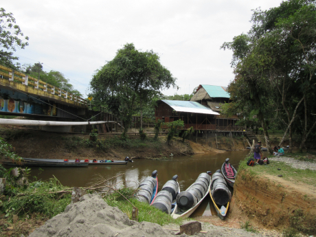 This is the point where the rubber leaves the road. We left the van and motored downriver from here for the next 2 hours to Jamu lodge