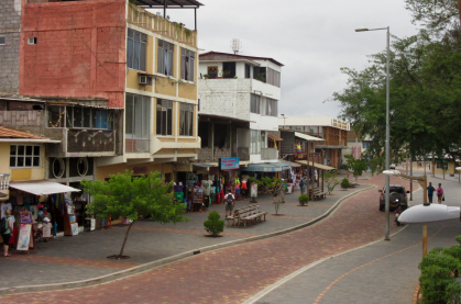 Downtown Puerto Baquerizo Moreno ← Previous Next → Downtown Puerto Baquerizo Moreno The row of shops, hotels and restaurants facing the seawall was a very nice place for a stroll at any time.