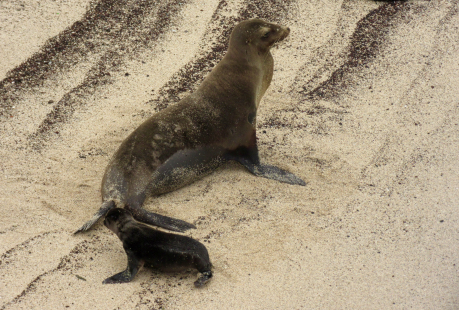Mother and Day-old Pup ← Previous Next → Mother and Day-old Pup This pup was born the night before and now its flippers were strong enough to support it.