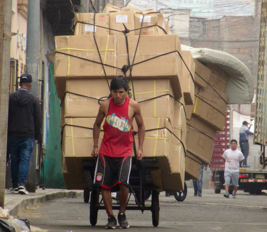 image ← Previous Next → Human Drayage in Lima’s Chinatown The average wage of Peruvians is about $200 per month, and manual labor is very common.