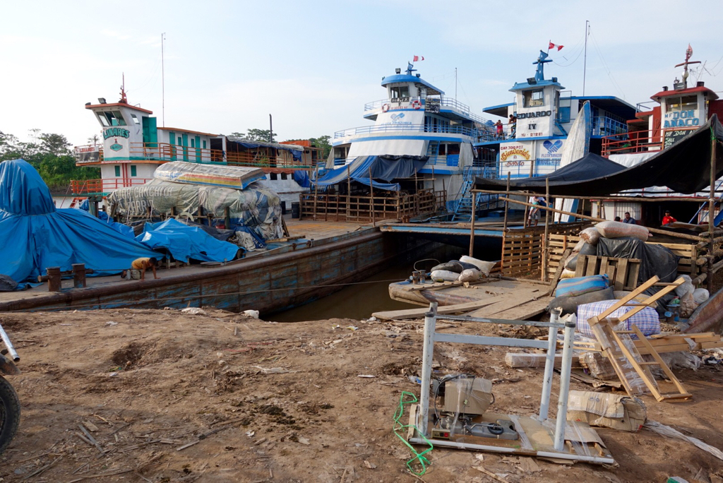 image ← Previous Next → Freight on Board The 2 boats on either side of the Eduardo IV have portable stables for cattle headed to Iquitos