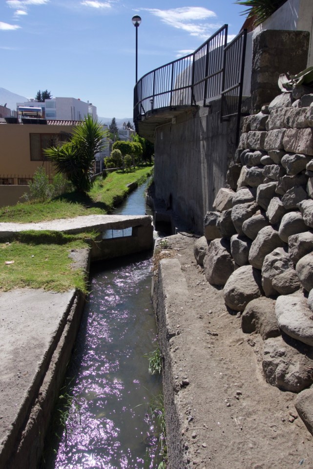 Though this one is smaller, on the other side of the river one can see acequias 8 feet wide and 4 feet deep with fast-flowing irrigation water.