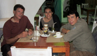 Janina Marlon Karl ← Previous Next → Janina, Marlon, Karl Marlon, Janina and a miscellaneous traveler, having our last meal together before I headed back to Quito.