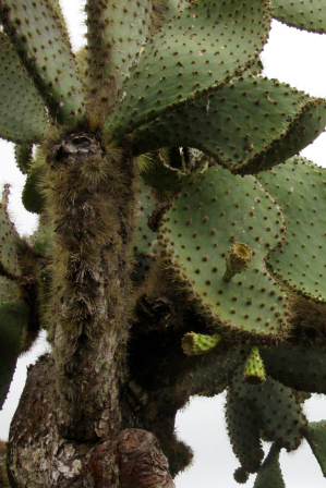 The main diet of the lowland tortoises. With their saddleback shells, they can stretch their necks up into the center of these cacti.